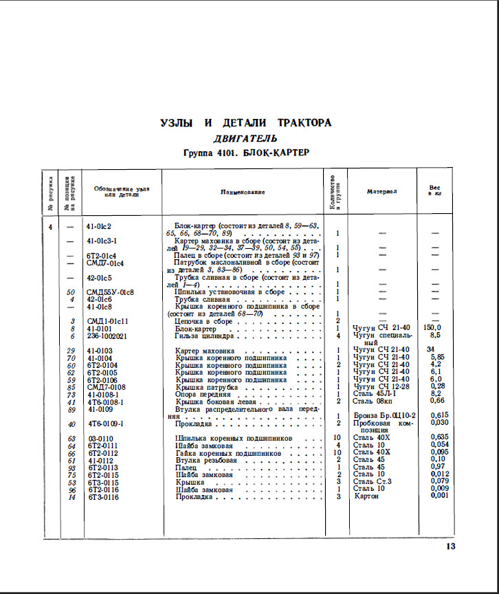 В сборнике применены различные обозначения для сборочных единиц и деталей трактора и дизеля.