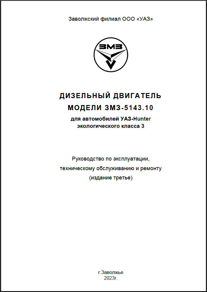 - Двигатели ЗМЗ 5143.10 Евро-3. Руководство по эксплуатации, т/о и ремонту