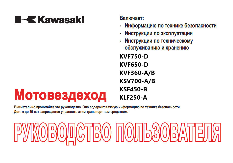 Эксплуатация и т/о квадроциклов Kawasaki KVF 750-D / 650-D / 360-A/B / KSV 700 A/B / KSF 450-B / KLF 250-A