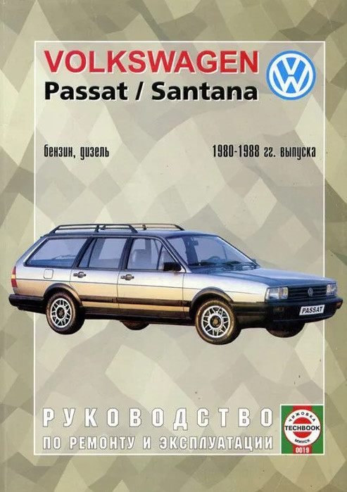 Руководство по ремонту Volkswagen Santana / Passat, а также руководство по техническому обслуживанию и эксплуатации Volkswagen Santana / Passat 1980-1988 гг. выпуска, оборудованных бензиновыми двигателями рабочим объемом 1,6, 1,8, 1,9, 2,0 л., а также дизельными двигателями объемом 1,6 л.